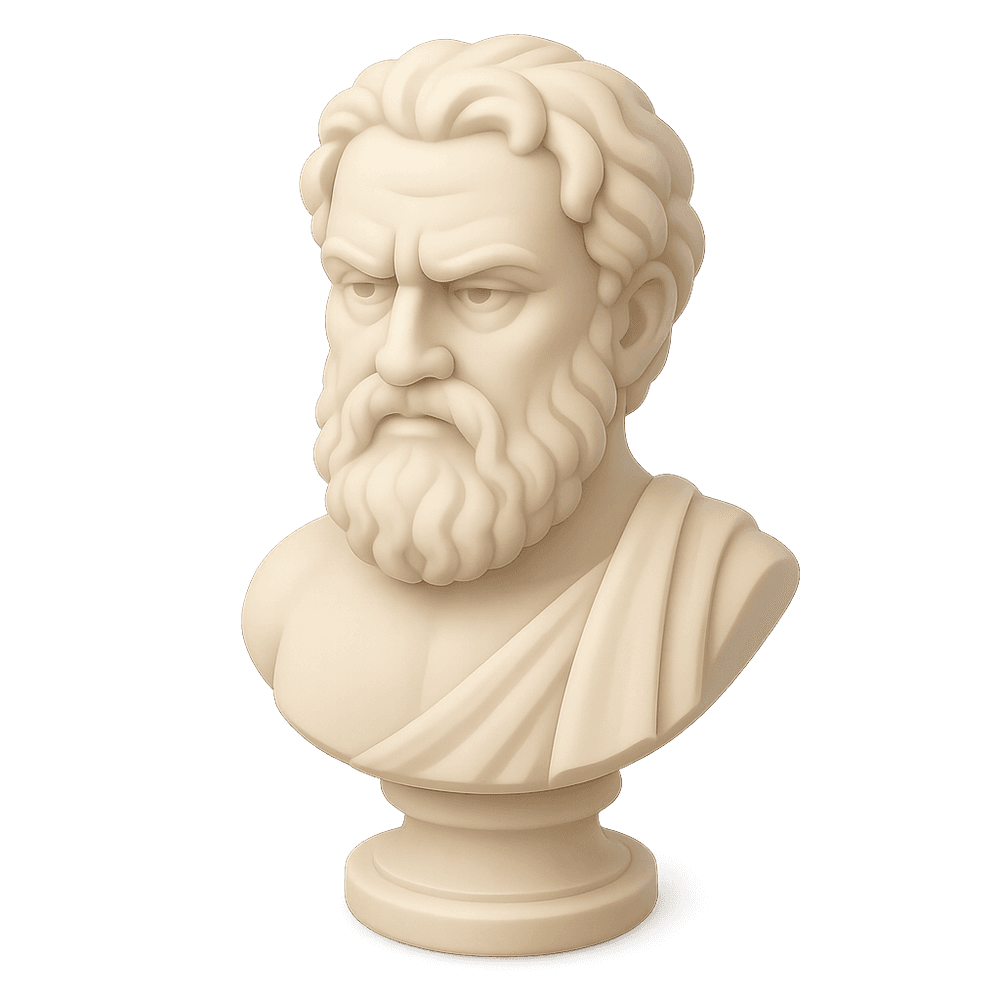 A sculpted bust representing Heraklit (Heraclitus), the ancient Greek philosopher known for his ideas on change and the nature of existence. This artwork reflects historical and cultural significance, often used as a decorative or educational piece.