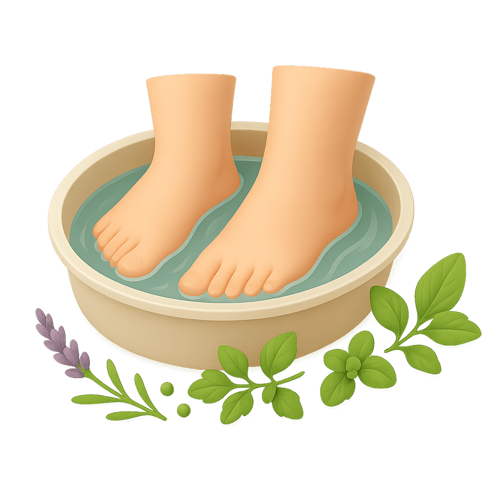 A soothing blend of herbs designed to be dissolved in warm water for soaking feet, promoting relaxation, relieving soreness, and supporting overall foot health.