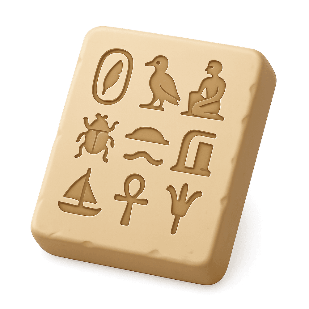 A carved stone featuring ancient hieroglyphic writing, often used to record important historical events, religious texts, or cultural stories. These stones provide valuable insights into early civilizations and their languages.