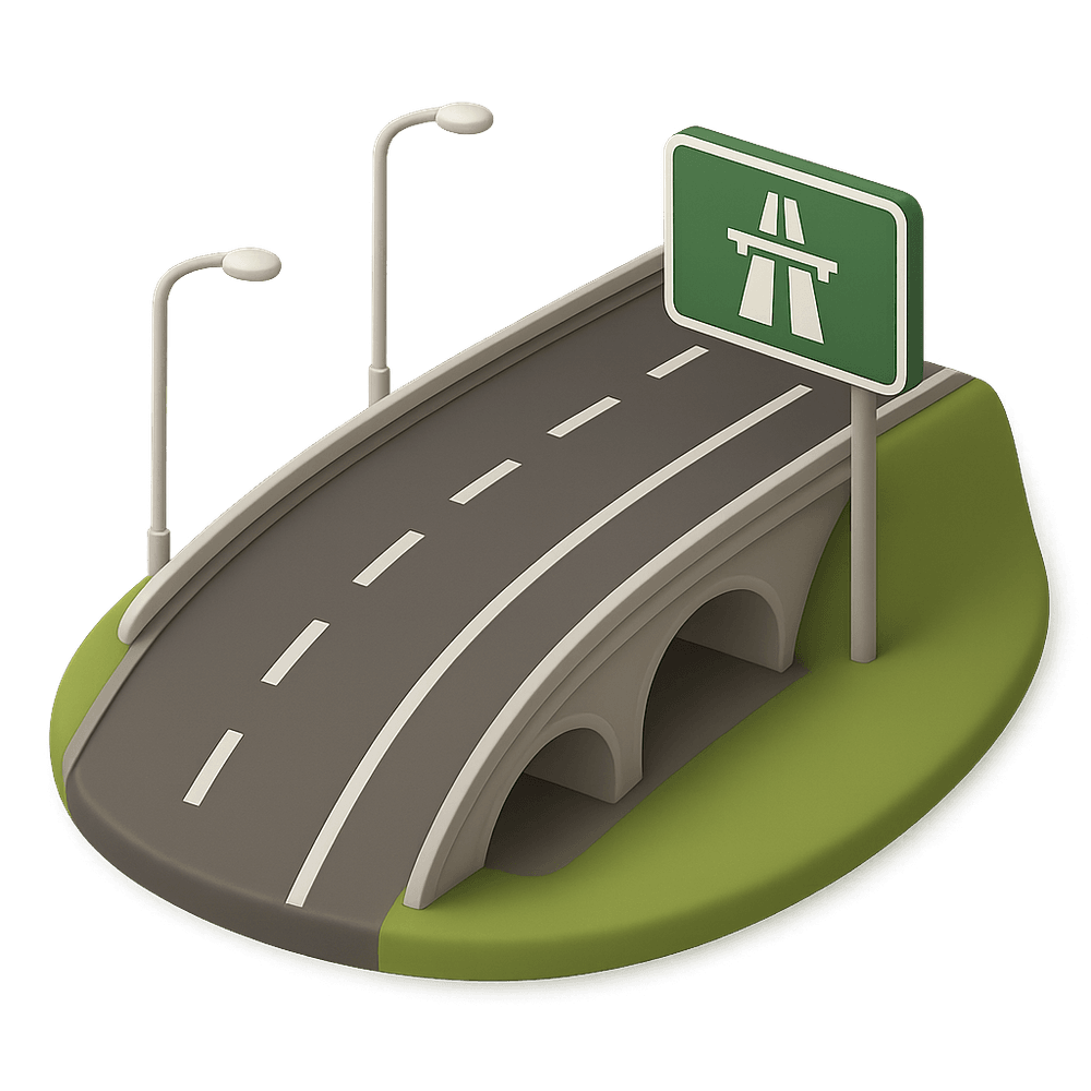 A highway is a major public road designed for fast, long-distance travel by vehicles, often connecting cities and regions. It typically features multiple lanes, limited access points, and is a key part of transportation infrastructure.