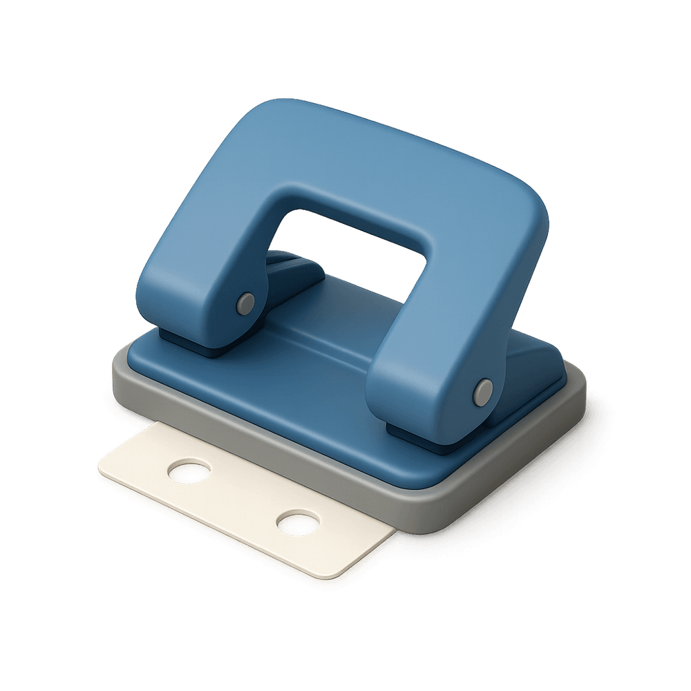 A hole punch is a handheld or desktop tool used to create holes in sheets of paper, allowing them to be organized in binders or folders. Commonly found in offices, schools, and homes, it is essential for document management and organization.