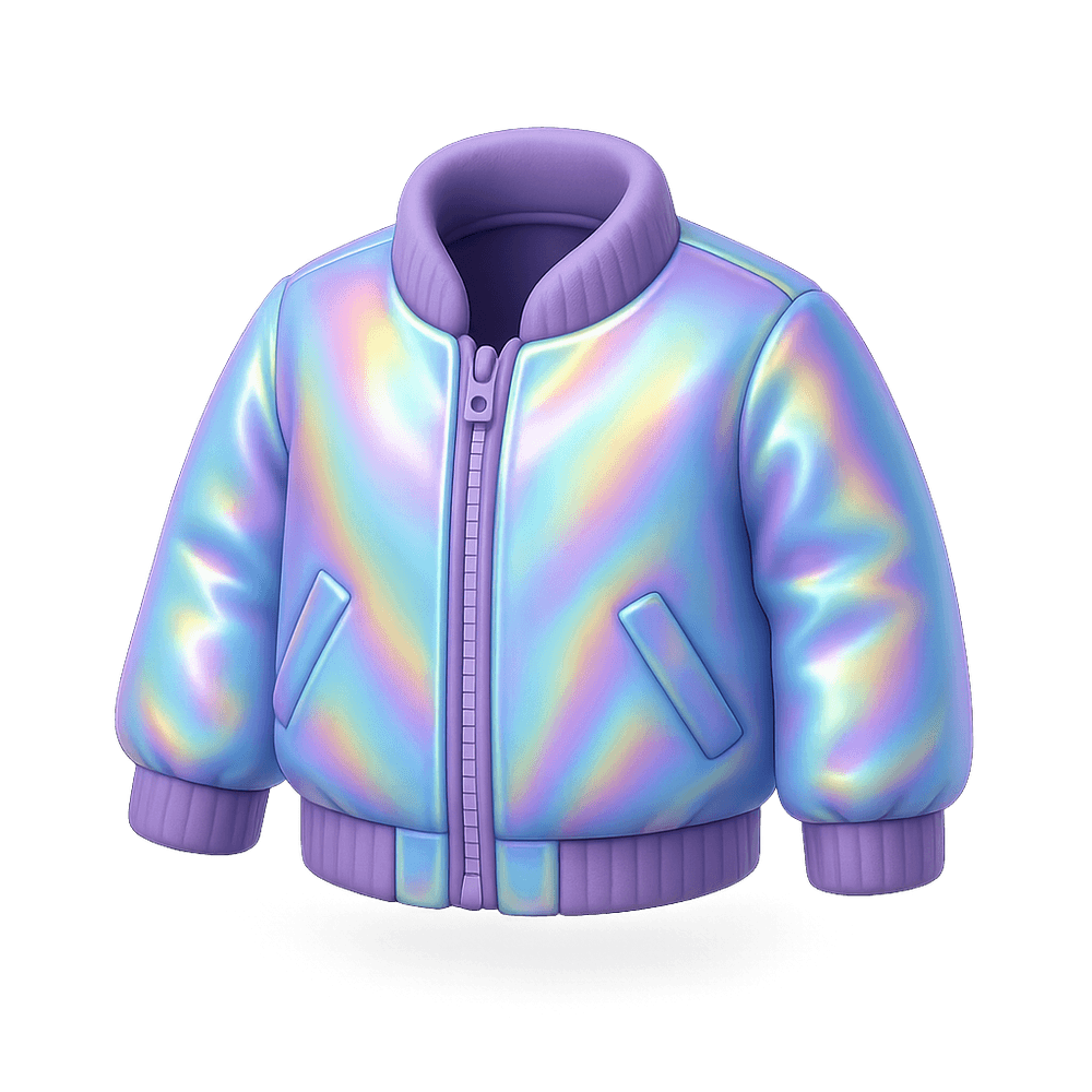 A futuristic jacket that features a shimmering, color-shifting holographic surface, making it a bold statement piece in modern fashion. Ideal for parties, festivals, or anyone looking to stand out with a unique, eye-catching style.