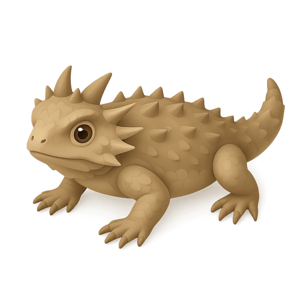 The horned lizard is a small, spiny reptile known for its distinctive horn-like projections on its head and its ability to squirt blood from its eyes as a defense mechanism. Native to arid regions of North America, it is well-camouflaged and feeds primarily on ants.