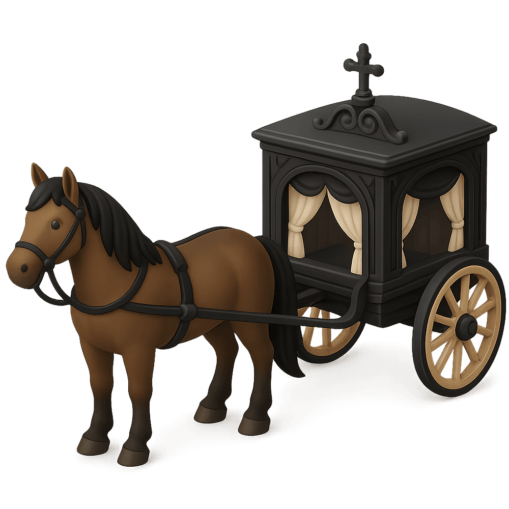 A horse-drawn hearse is a traditional funeral vehicle, typically an ornate carriage pulled by horses, used to transport the deceased to their final resting place. It is often associated with historical and ceremonial funerals.