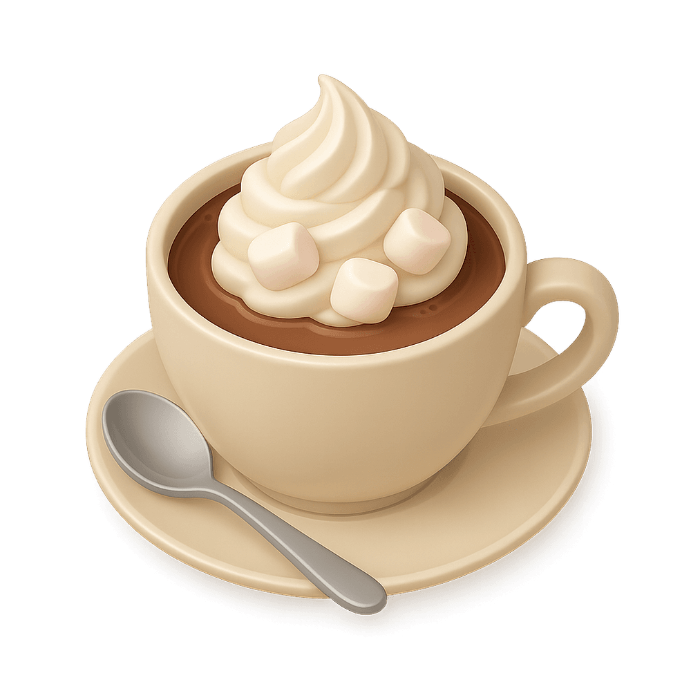 A warm, sweet beverage made by mixing cocoa powder or chocolate with milk or water, often topped with whipped cream or marshmallows. Hot chocolate is a comforting drink enjoyed especially in cold weather.
