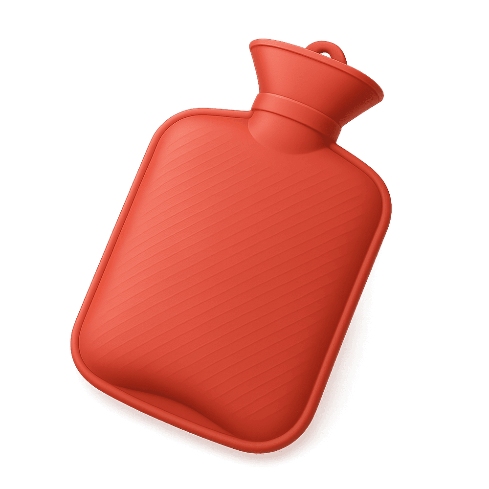 A hot water bottle is a flexible container, usually made of rubber or similar material, filled with hot water and used to provide warmth or relieve pain and discomfort. Commonly used for soothing aches, cramps, or for comfort during cold weather.