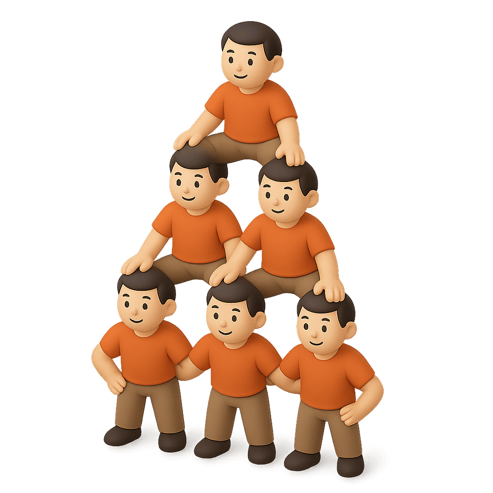 A human pyramid is a formation in which people stand or kneel on top of one another to create a multi-level structure, often seen in cheerleading, acrobatics, and team-building sports events.
