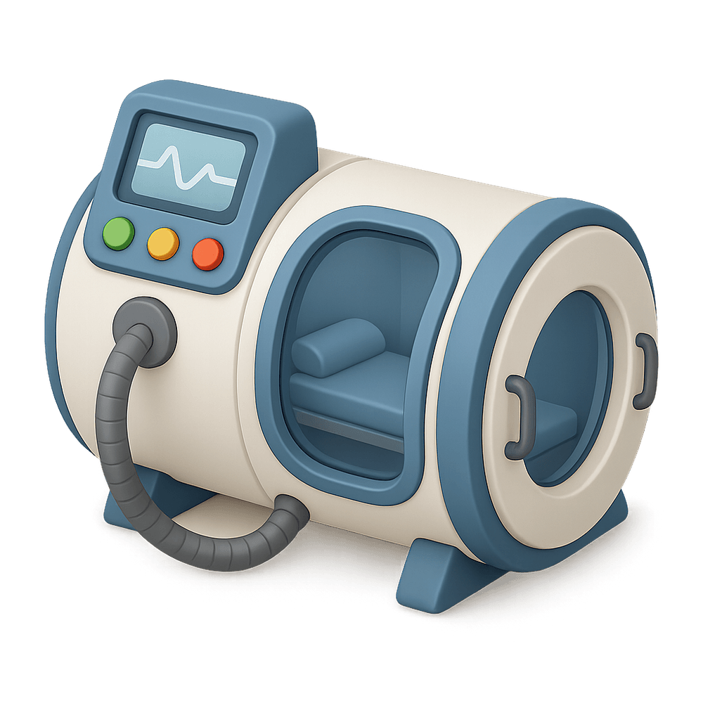 A hyperbaric chamber is a sealed medical device that delivers pure oxygen at higher-than-normal atmospheric pressure, used to promote healing and treat various health conditions such as decompression sickness, wounds, and infections.