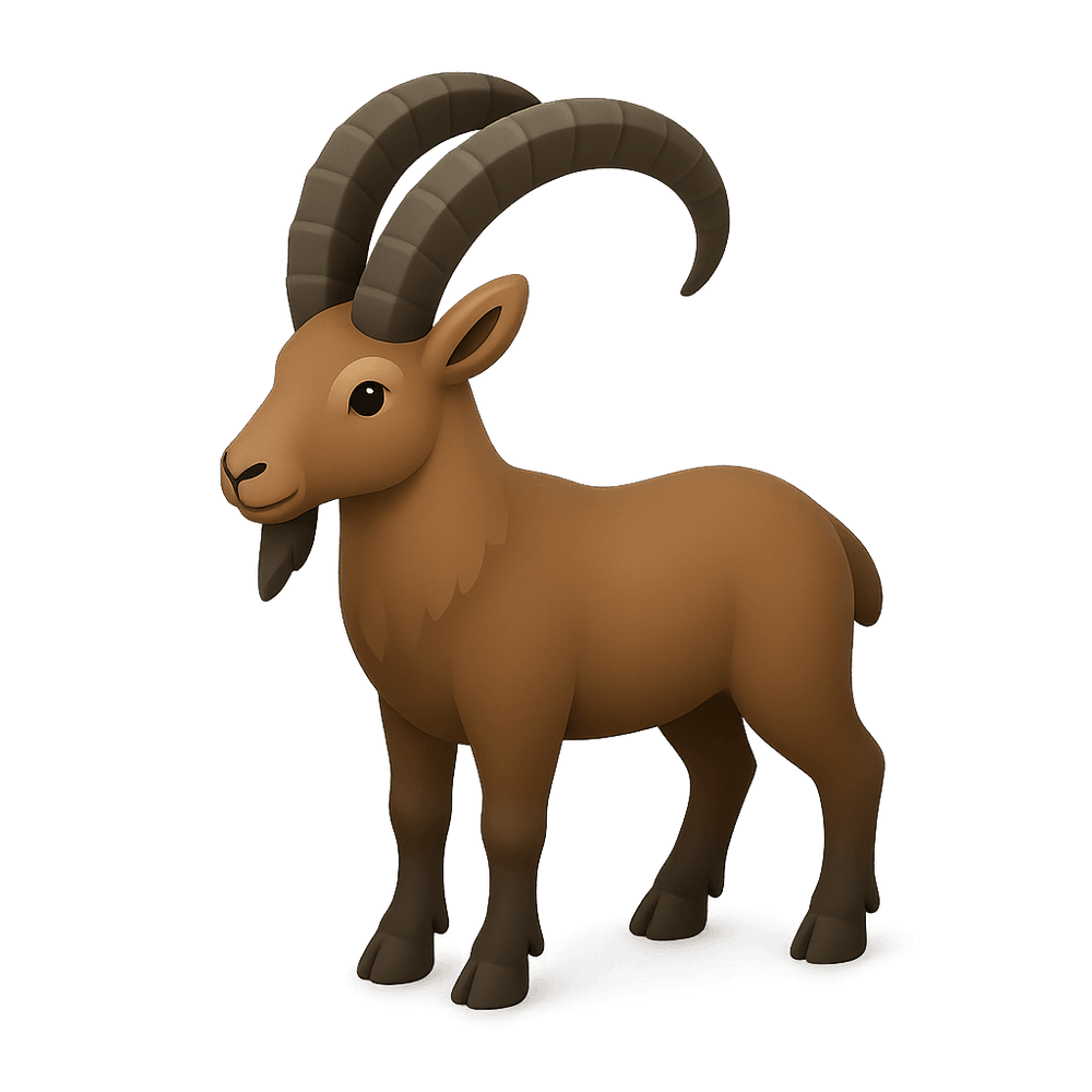 The ibex is a wild mountain goat known for its impressive curved horns and agility on steep, rocky terrain. Native to mountainous regions of Europe, Asia, and Africa, ibexes are herbivorous and well-adapted to rugged environments.