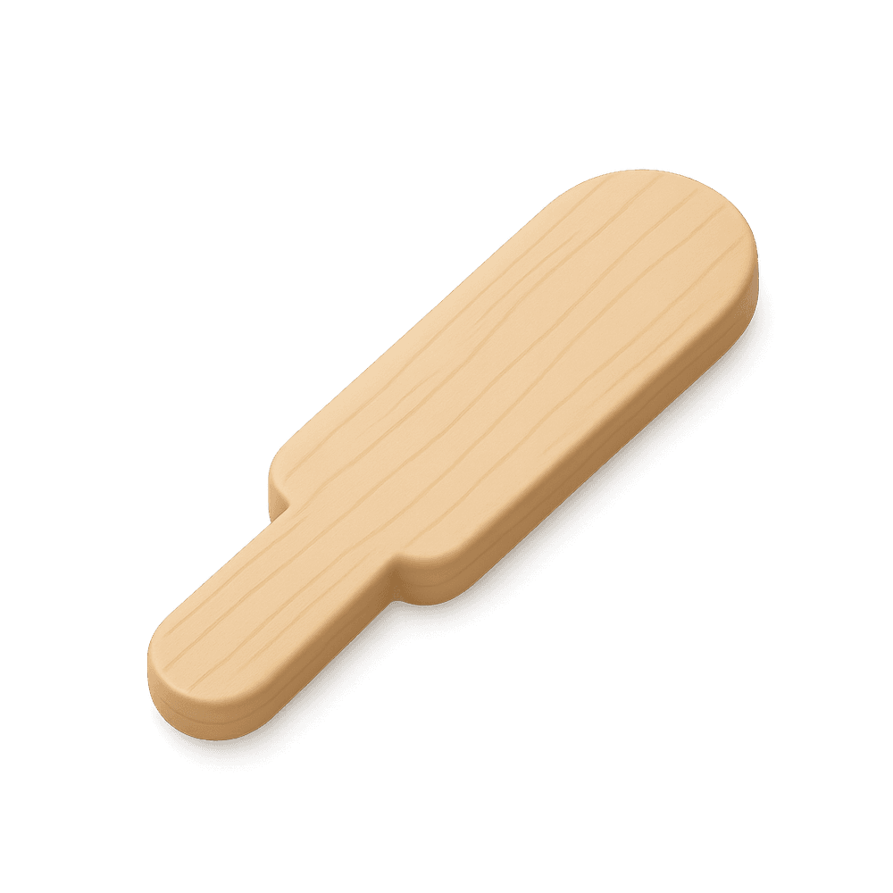 A small, flat wooden stick used to hold and eat ice cream bars or popsicles. Often repurposed for crafts and DIY projects after use.