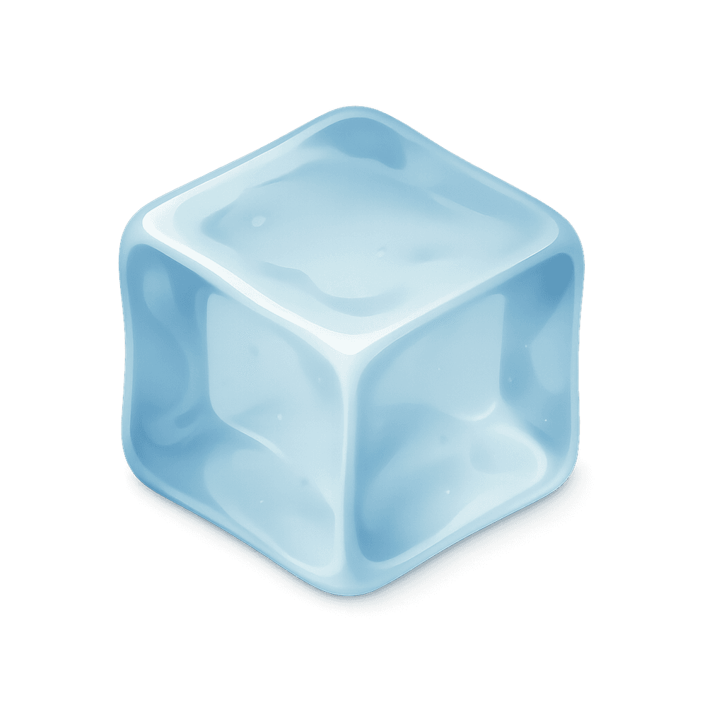 A small, solid piece of frozen water commonly used to chill beverages and keep food cold. Ice cubes are a staple in kitchens and bars, providing a simple way to cool drinks and preserve freshness.