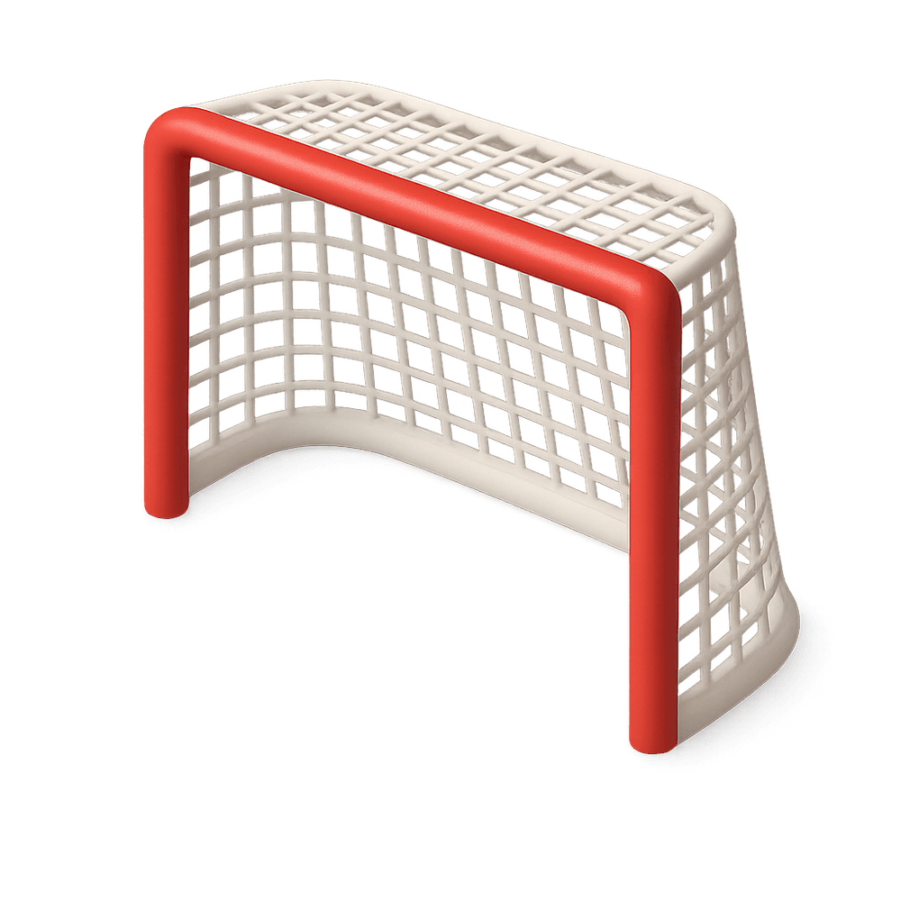 A structure used in the sport of ice hockey, consisting of a metal frame with a net, serving as the target area for scoring goals during a game.