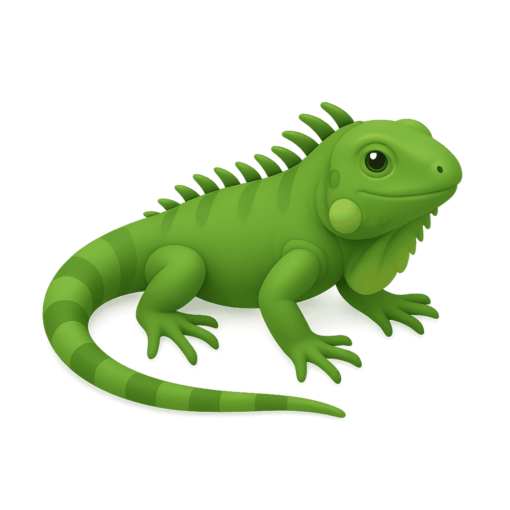 The iguana is a large, herbivorous lizard native to Central and South America, known for its distinctive crest of spines along its back and its ability to adapt to various environments. Iguanas are often found in tropical forests and are popular as exotic pets.