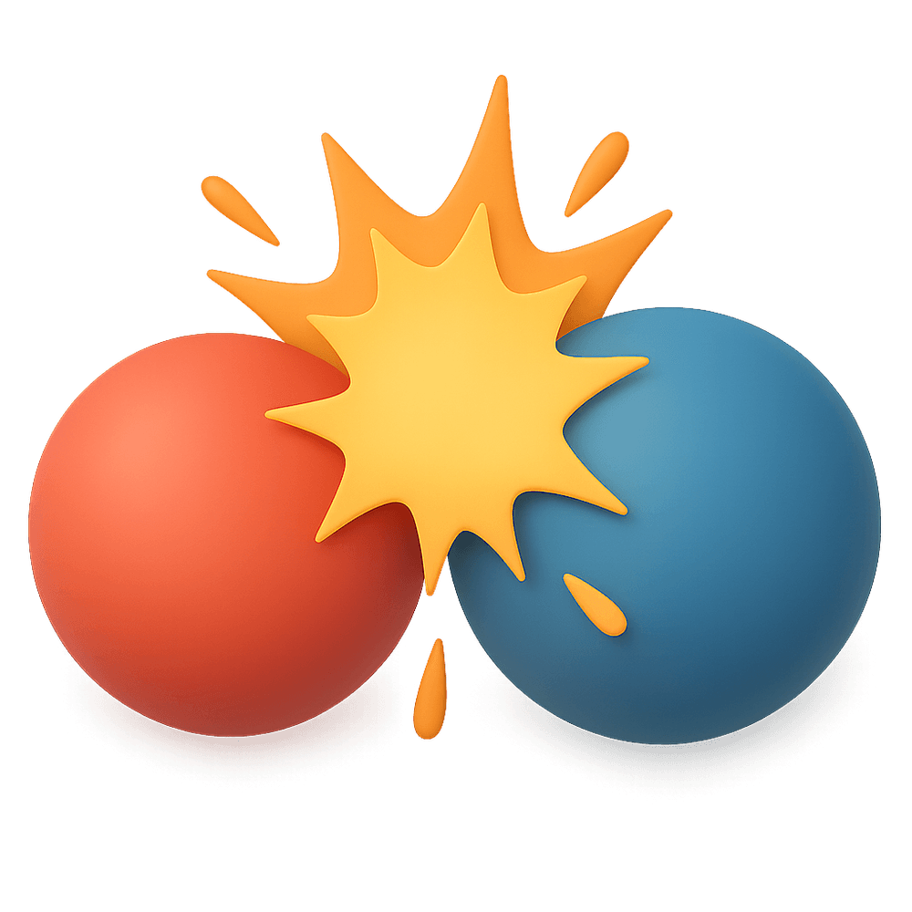 A visual or interactive element used in interfaces to represent the concept of forceful contact, collision, or significant effect. Often used in digital design, gaming, or data visualization to indicate a dramatic change, event, or result.