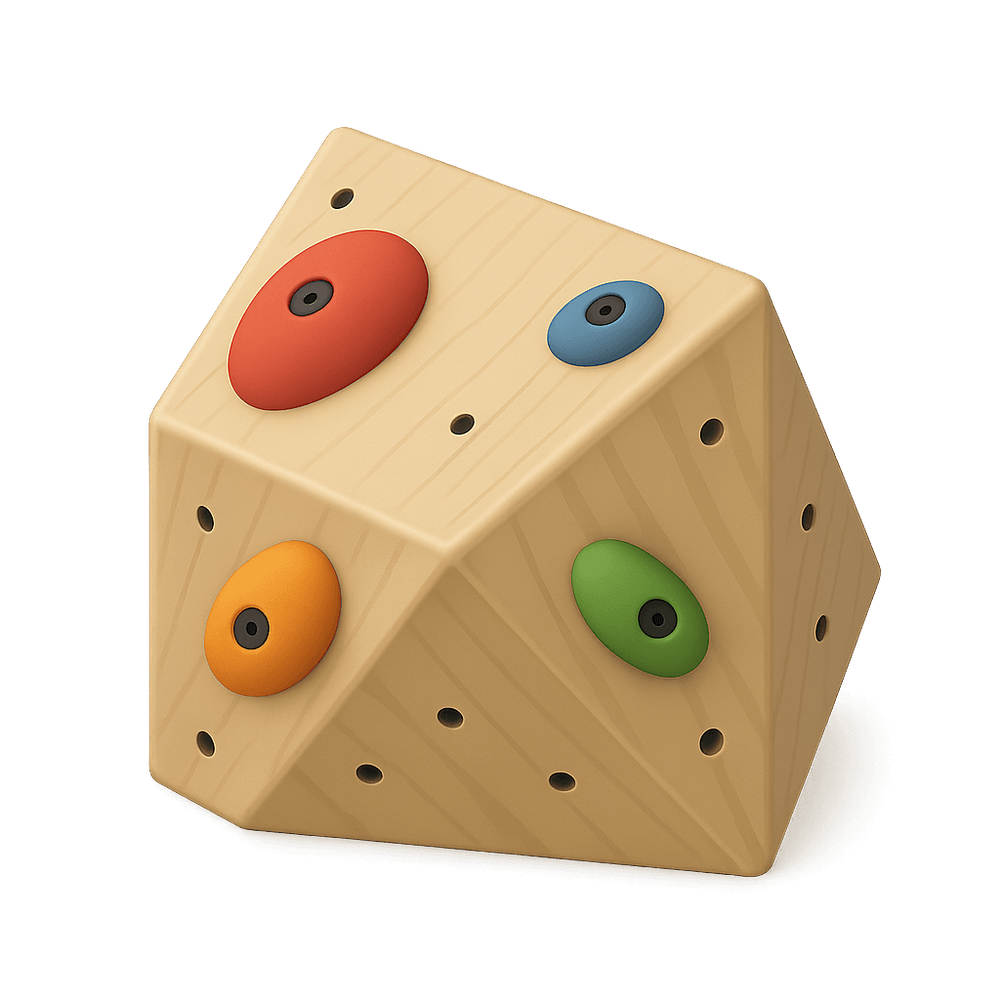 A three-dimensional structure used in indoor climbing gyms to create varied and challenging climbing routes. These volumes are typically made from wood or composite materials and are attached to climbing walls to add features, angles, and holds for climbers.