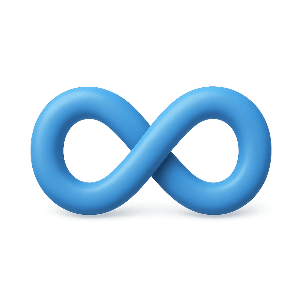 The Infinity Loop is a continuous, closed curve symbol resembling a sideways figure eight. It represents the concept of infinity, endlessness, or limitless possibilities, and is commonly used in user interfaces and symbolic communication to denote cycles, continuity, or perpetual motion.