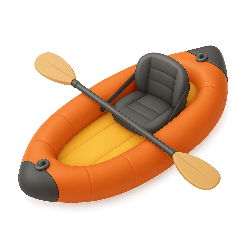 A lightweight, portable kayak made from durable, inflatable materials. Designed for easy transport and storage, it is ideal for recreational paddling on lakes, rivers, and calm coastal waters.