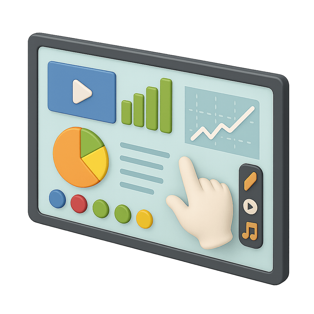 A large, touch-sensitive digital screen designed for interactive presentations, collaboration, and media display in public or professional spaces. Enables users to engage with content through gestures, drawing, and multimedia integration.