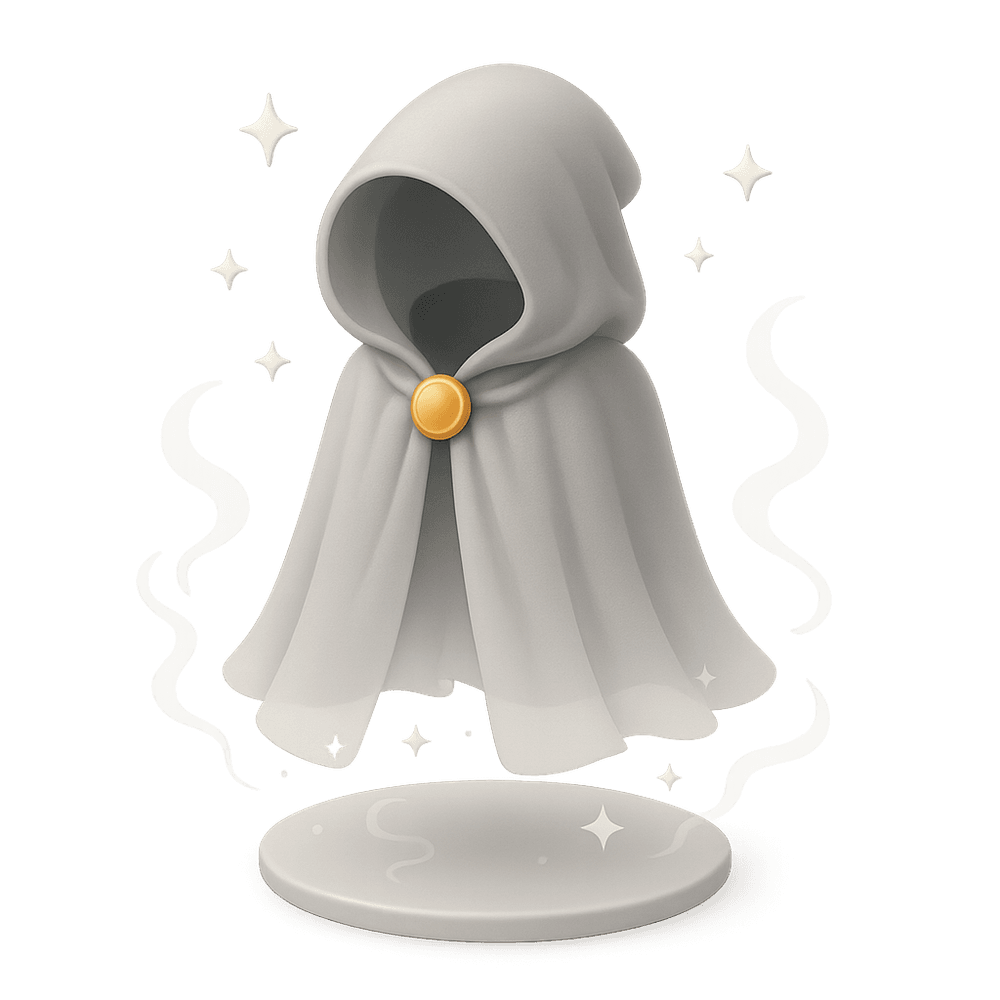 A magical garment that renders its wearer invisible to the naked eye, often featured in fantasy stories and legends. Perfect for stealth, adventure, or escaping danger.