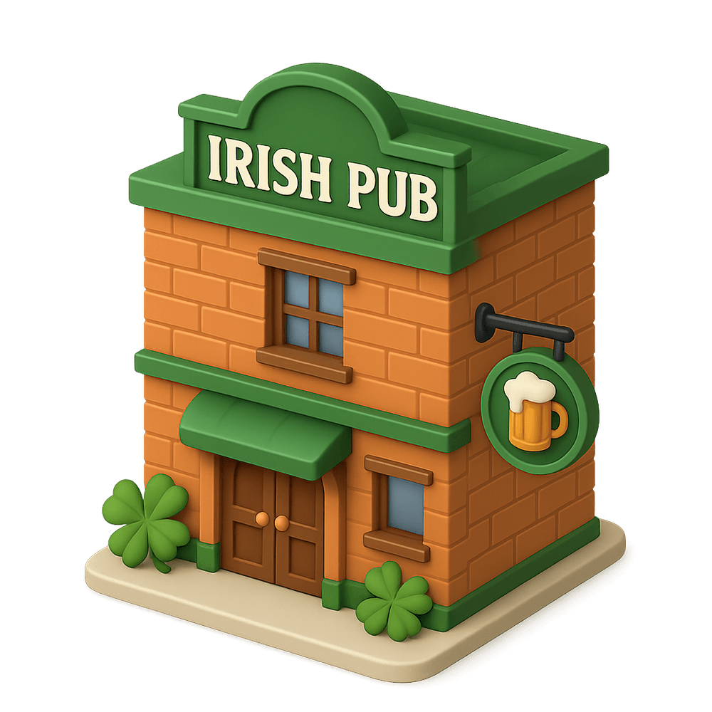 A traditional Irish Pub is a social gathering place known for its cozy atmosphere, live music, and a wide selection of beers and whiskeys. It often features rustic decor, wooden furnishings, and serves as a hub for community interaction and entertainment.