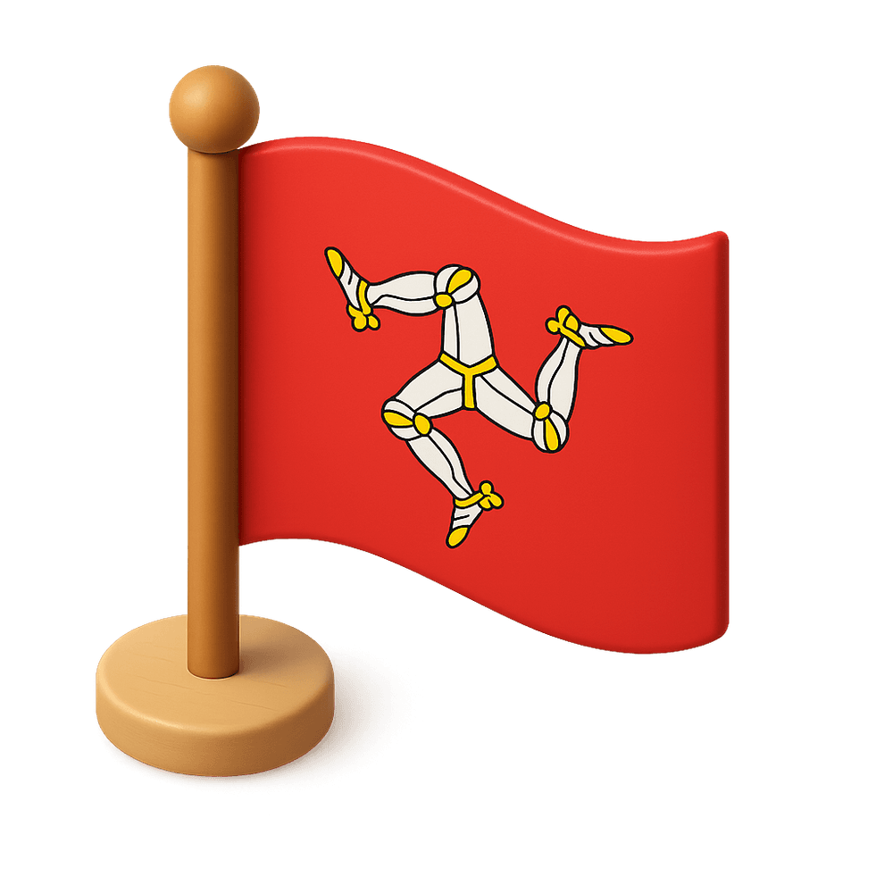 The Isle of Man Flag features a red field with a triskelion of three armored legs with golden spurs, symbolizing the island's independence and unique heritage. It is the official flag of the Isle of Man, a self-governing British Crown dependency in the Irish Sea.