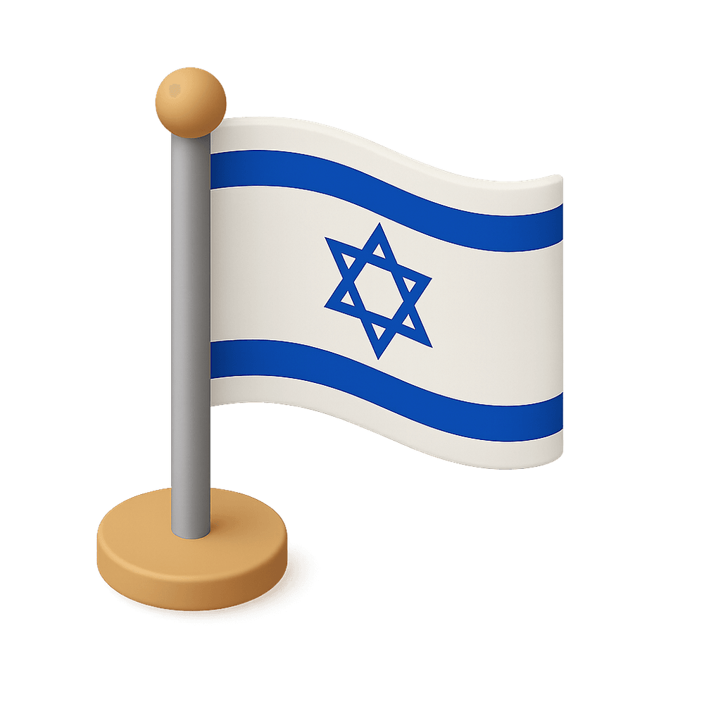 The national flag of Israel features a blue Star of David between two horizontal blue stripes on a white background. It symbolizes the Jewish identity and heritage of the country.