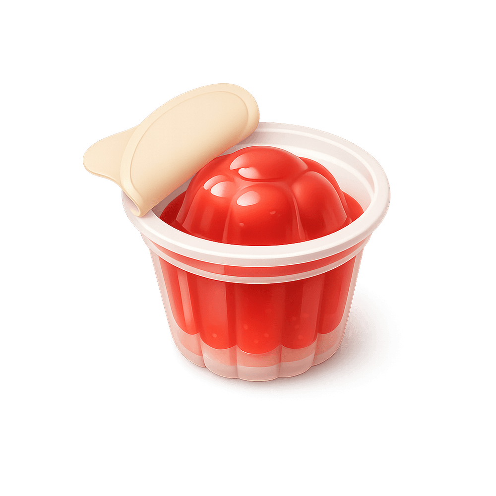 A Jello Cup is a small, single-serving container filled with flavored gelatin dessert. It is often enjoyed as a sweet, wobbly treat and is popular in lunchboxes, parties, and as a quick snack.