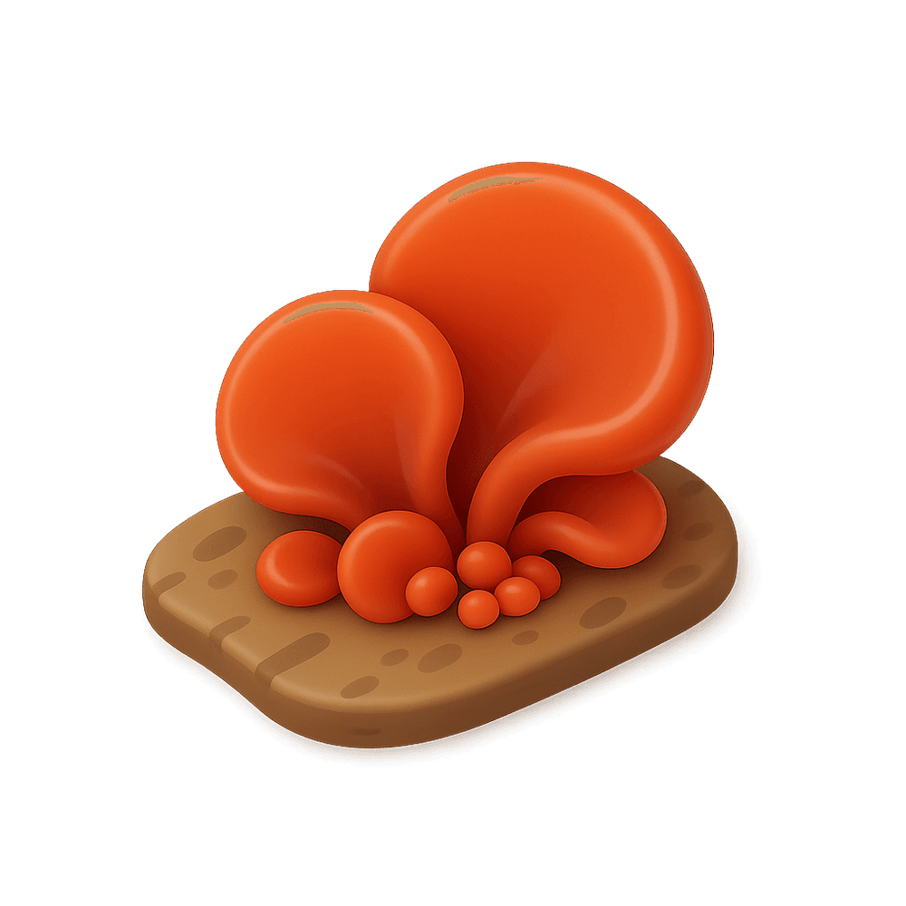 Jelly Fungus is a group of gelatinous, often brightly colored fungi found on decaying wood or forest floors. Known for their unique, jelly-like texture, these fungi play an important role in breaking down organic matter in natural ecosystems.