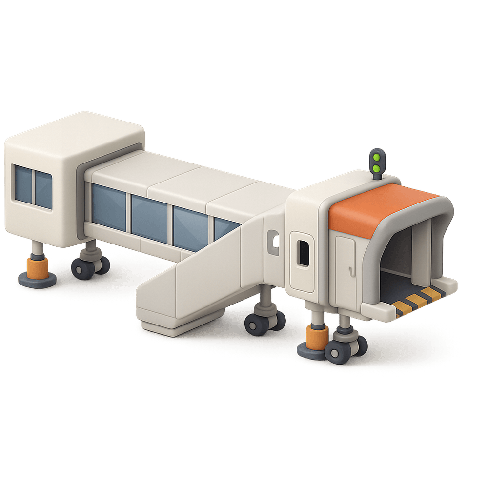 A jet bridge is a movable, enclosed walkway that connects an airport terminal to an aircraft, allowing passengers to board and disembark safely and comfortably regardless of weather conditions.