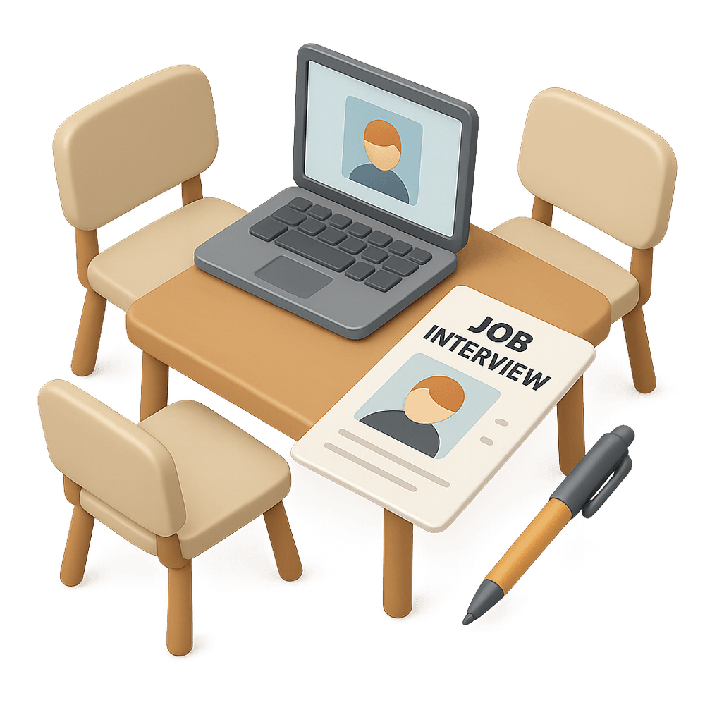 A job interview is a formal meeting between an employer and a job applicant, where the applicant is assessed for suitability for a specific position. It typically involves questions, discussions about qualifications, and evaluation of skills.