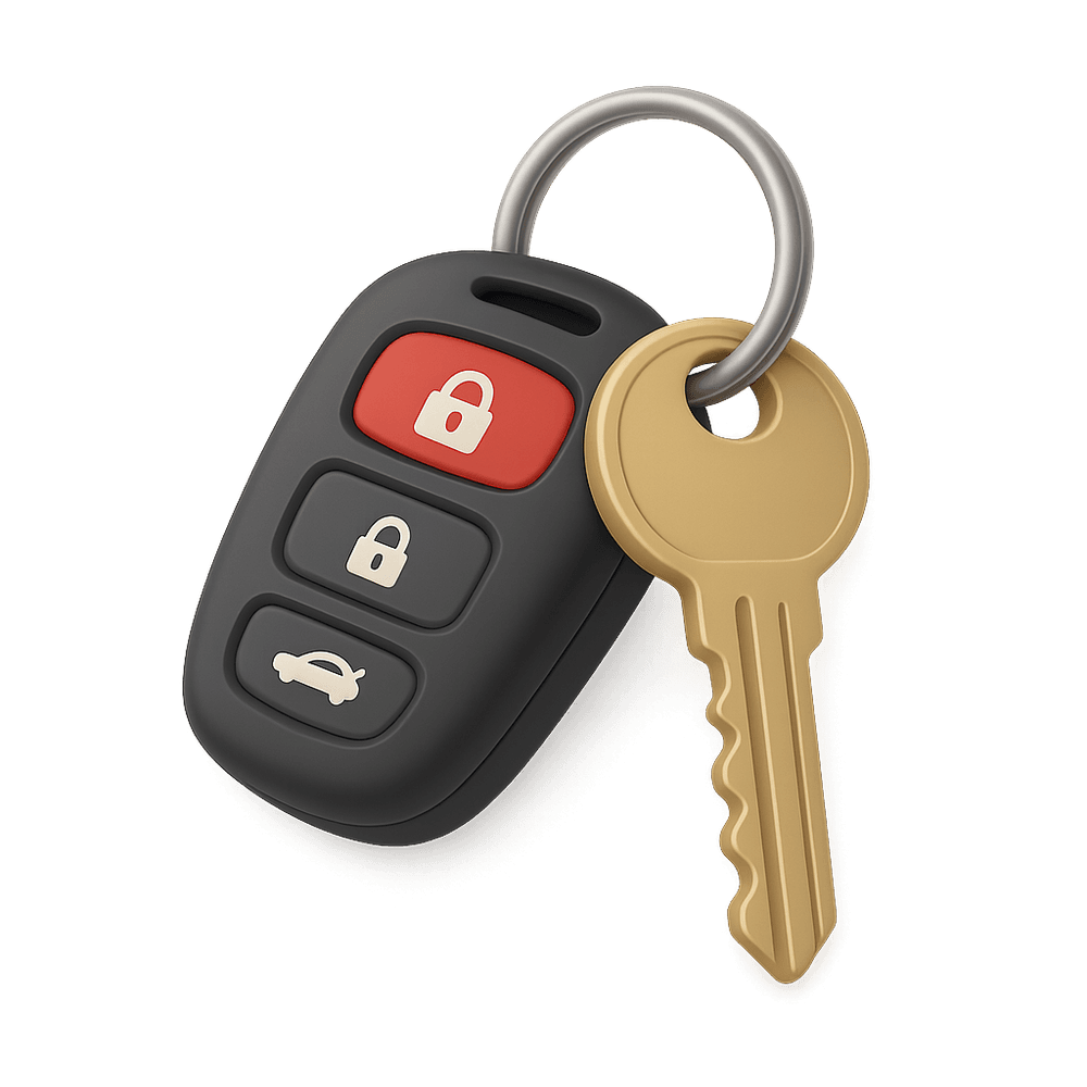 A key fob is a small, portable device used to carry and organize keys, often featuring a decorative or functional element such as a remote control for vehicles or electronic access. It is a common everyday accessory for personal security and convenience.
