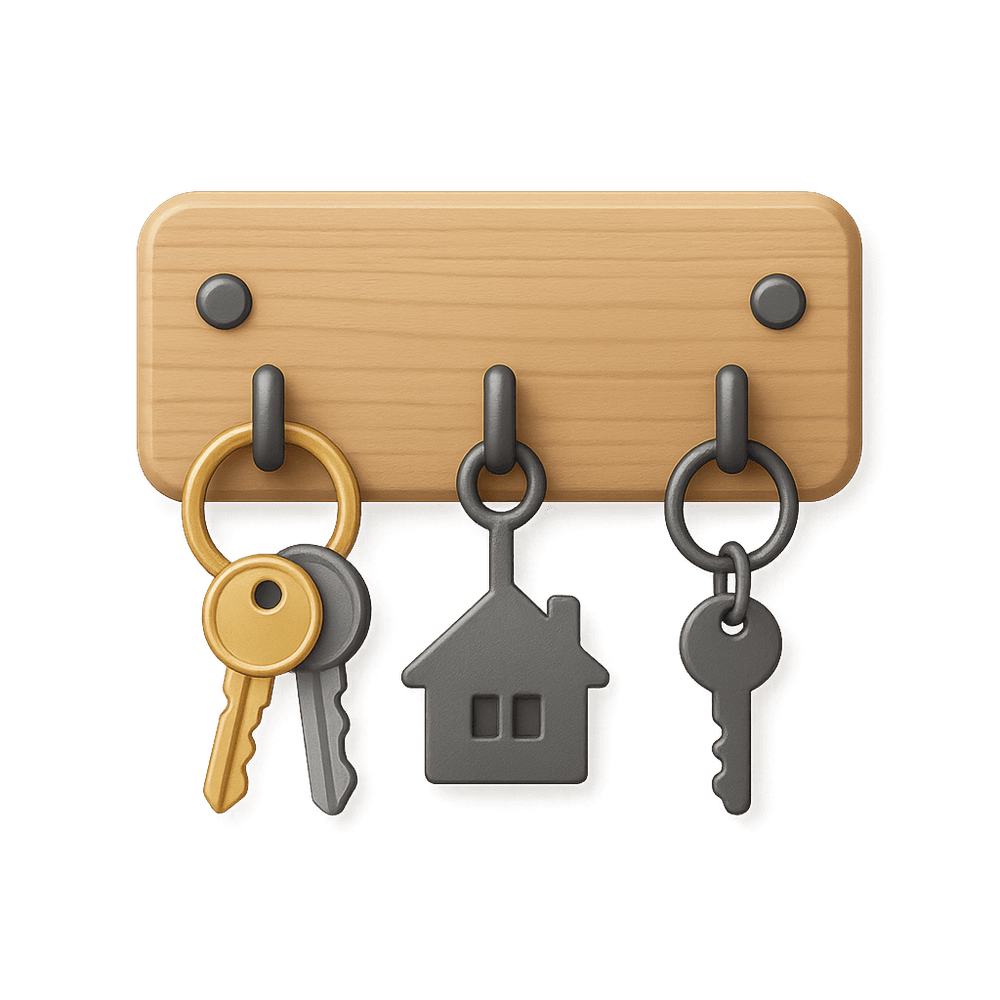 A key holder is a small, often wall-mounted or tabletop object designed to organize and store keys in one convenient location. It helps prevent misplacement of keys and can come in various designs, from simple hooks to decorative boxes with compartments. Key holders are commonly found near entryways in homes and offices, making everyday life more organized and efficient.
