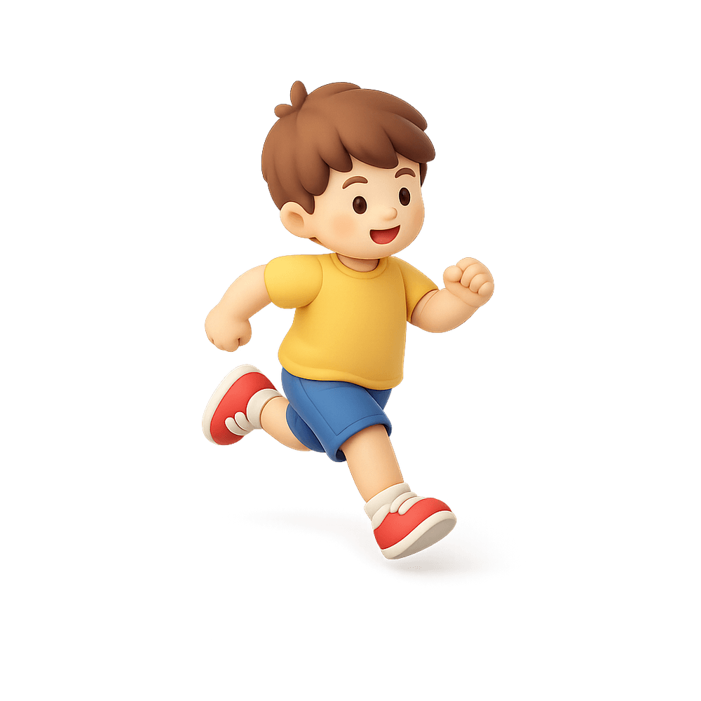 A child in motion, energetically running as part of play or daily activity. This object captures the joy and movement of youth in everyday life.