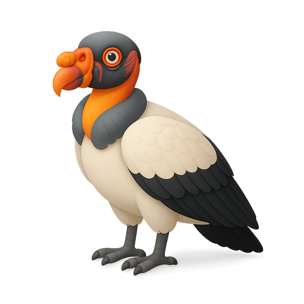 The King Vulture is a strikingly colorful large bird of prey found in Central and South America. Known for its bald head with vivid orange, yellow, and red hues, it plays a vital role as a scavenger in tropical forests, helping to keep ecosystems clean by feeding on carrion.