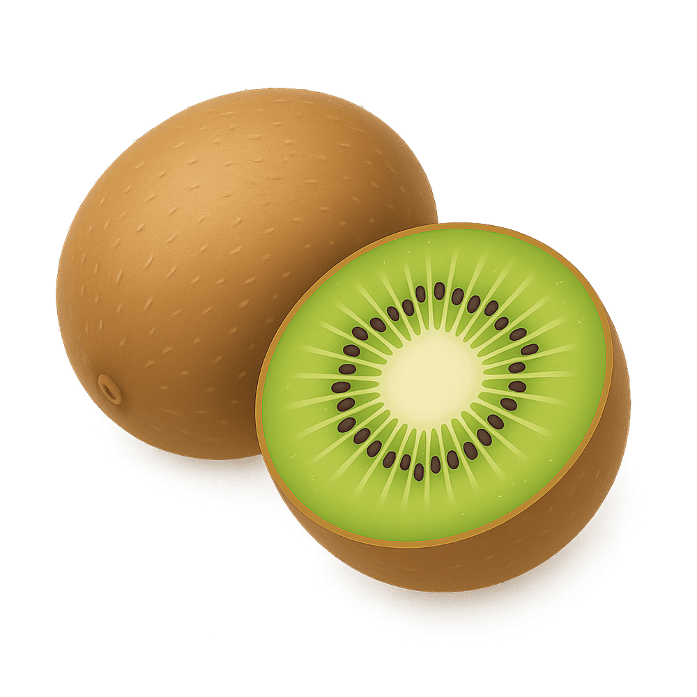 A small, oval fruit with fuzzy brown skin and bright green, sweet-tart flesh. Kiwi fruit is rich in vitamin C and often eaten fresh or used in desserts and salads.