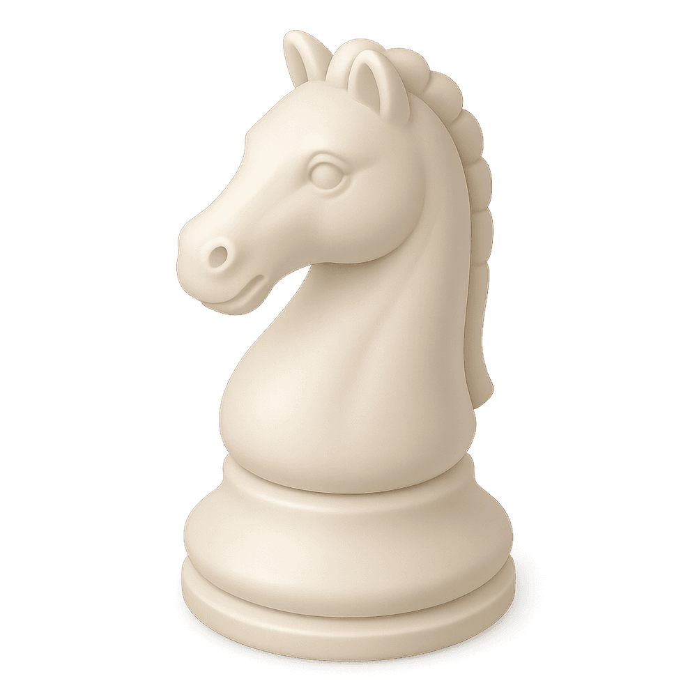 A chess piece shaped like a horse's head, known for its unique L-shaped movement on the board. The knight is a key figure in chess strategy and gameplay.