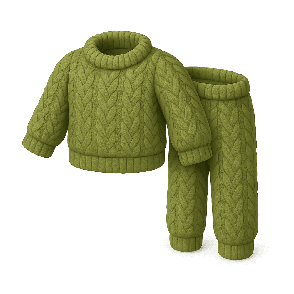 A coordinated set featuring a knitted sweater and matching bottoms, offering both warmth and style. Perfect for casual outings or cozy indoor wear, this set combines comfort with fashionable design.