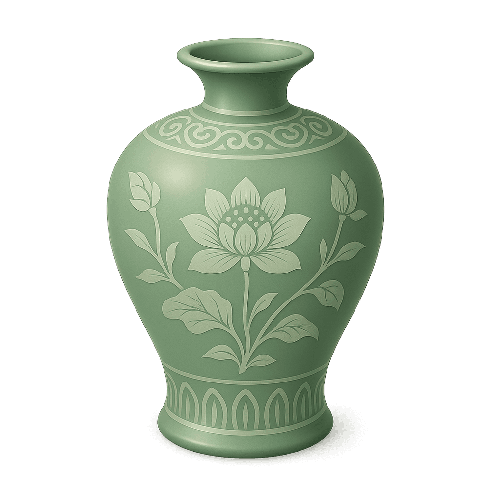 A Korean Celadon Vase is a traditional ceramic vessel renowned for its distinctive jade-green glaze and elegant shapes, originating from Korea's Goryeo Dynasty. These vases are celebrated for their artistic craftsmanship and cultural significance in East Asian history.
