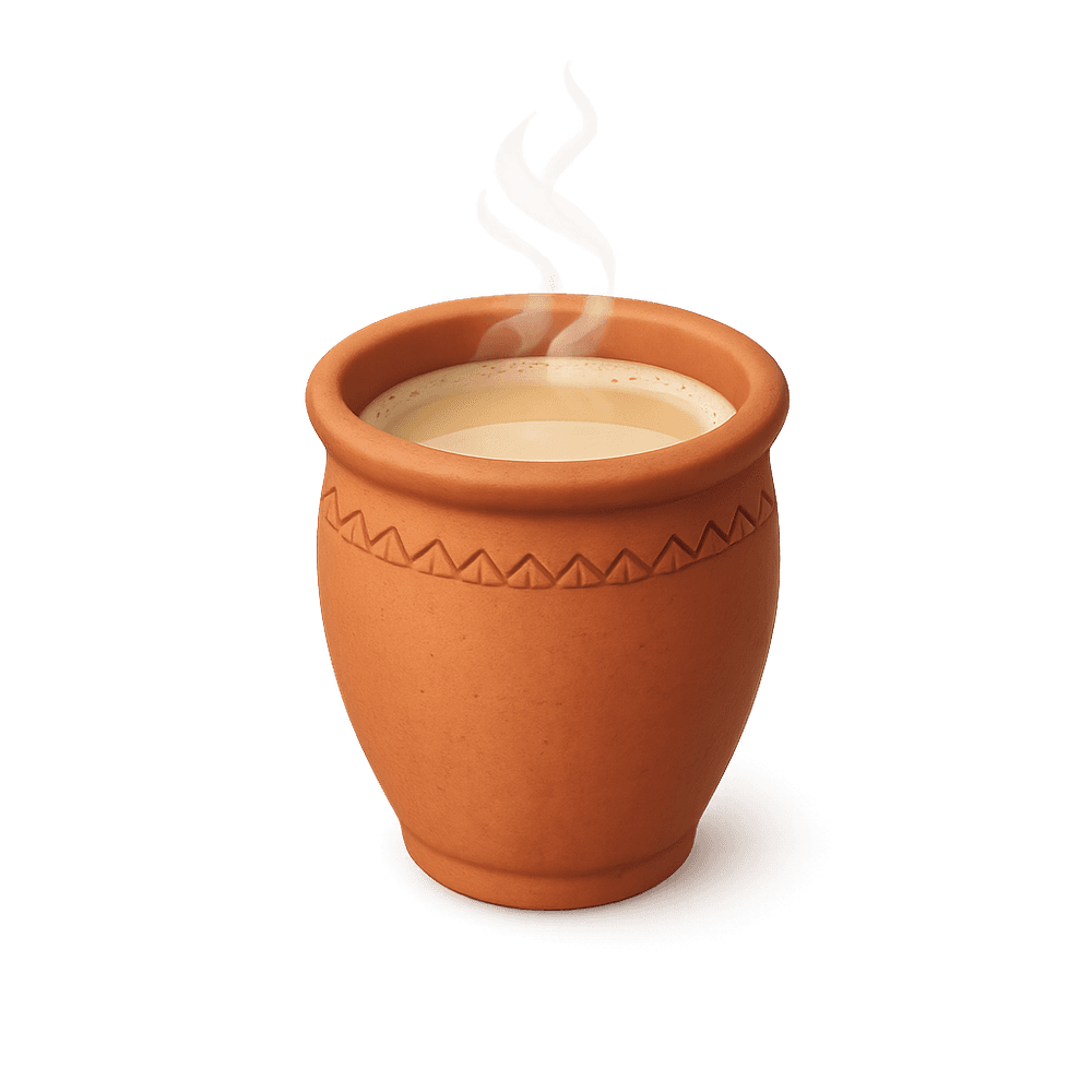 A kulhad is a traditional, unglazed clay cup commonly used in India for serving hot beverages like tea or milk. It imparts an earthy flavor and is eco-friendly, often used in street food culture.