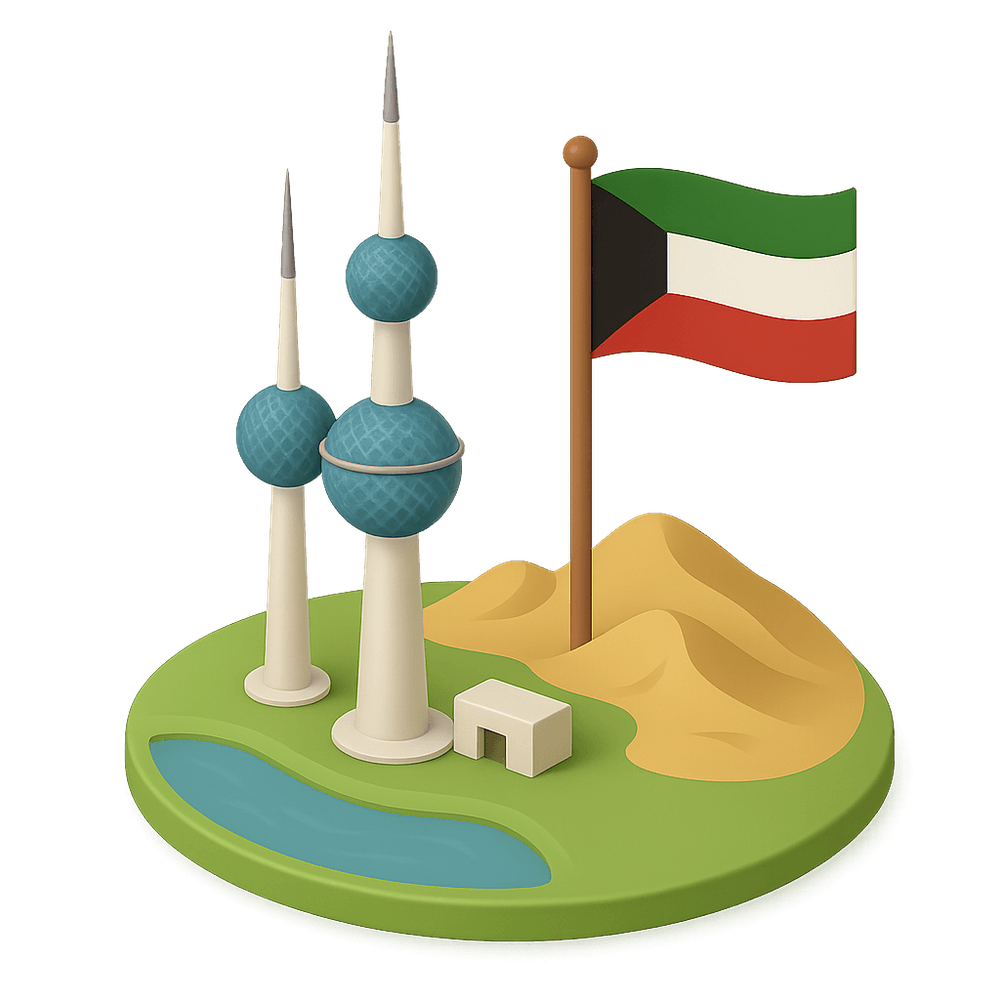 Kuwait is a Middle Eastern country located at the tip of the Persian Gulf, known for its rich oil reserves, modern architecture, and vibrant culture. Its capital is Kuwait City.
