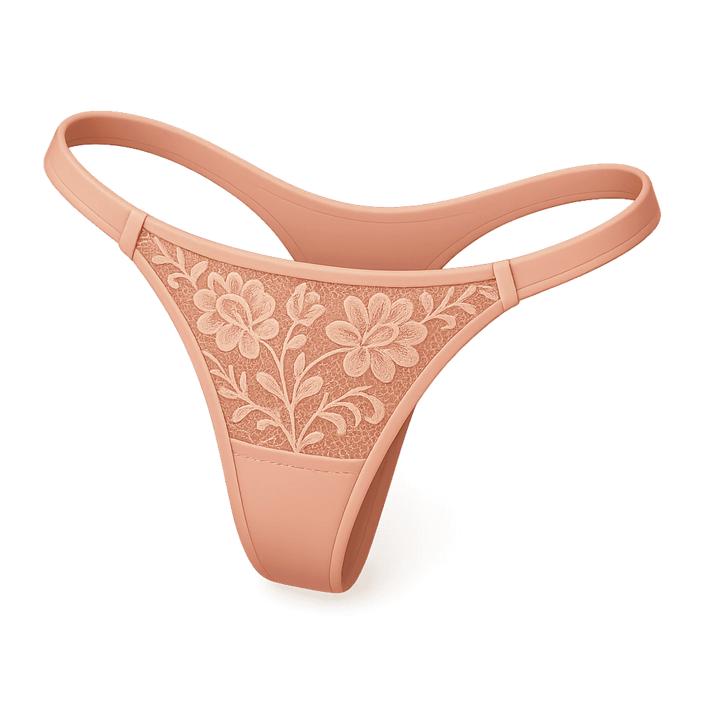 A lace thong is a minimal, delicate undergarment designed for women, featuring a narrow strip of fabric at the back and intricate lace detailing for a stylish, sensual look. It offers minimal coverage and is often chosen for its comfort under tight-fitting clothing and its fashionable appeal.