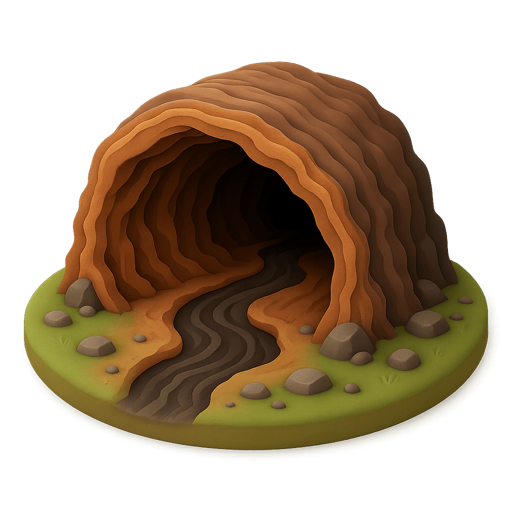A lava tube is a natural tunnel formed by flowing lava beneath the surface of a solidified lava flow. These underground passages are created when the surface of a lava flow cools and hardens while the molten lava beneath continues to flow, eventually draining away and leaving a hollow tube. Lava tubes can be found in volcanic regions and often serve as unique geological features for exploration and study.