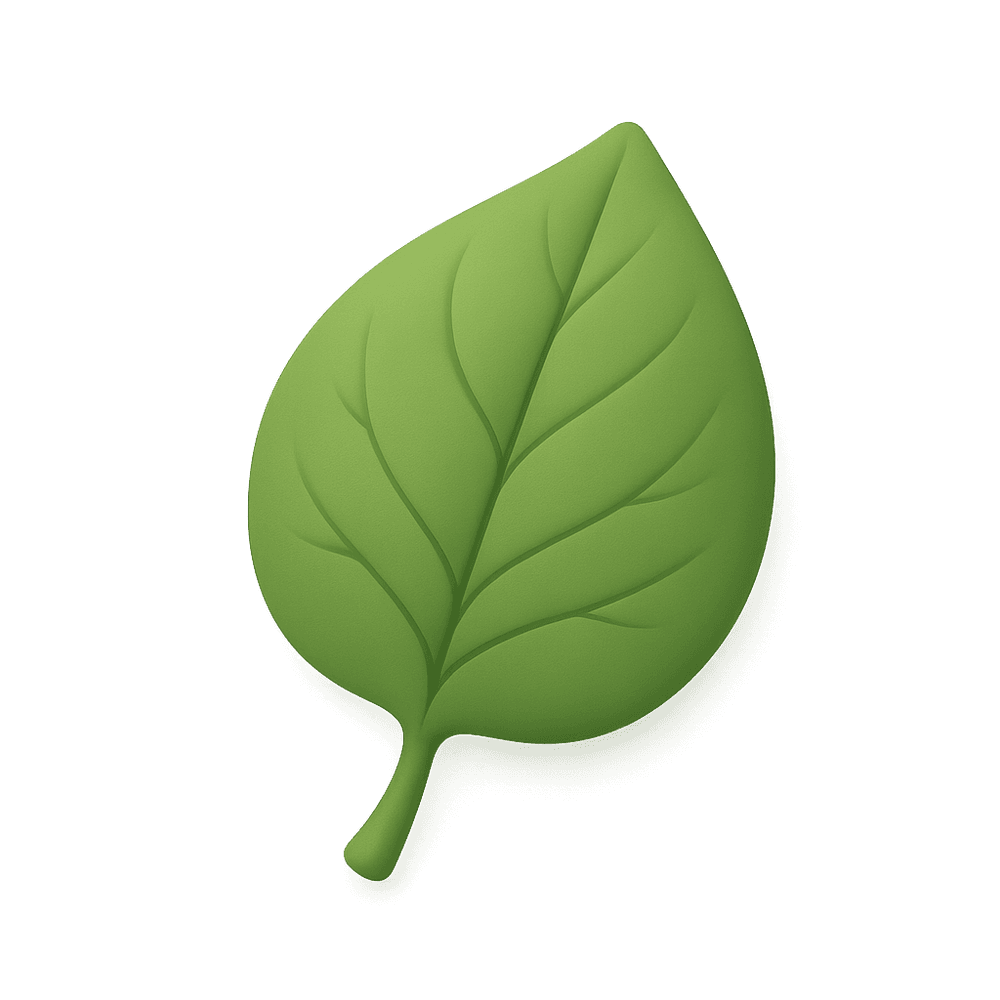 A flat, green structure attached to the stem of a plant or tree, responsible for photosynthesis and gas exchange. Leaves come in various shapes and sizes and are a fundamental part of most plants found in nature.