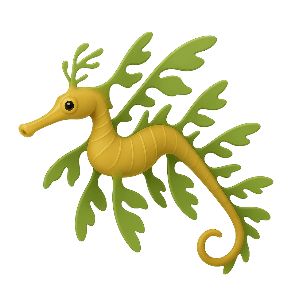 The Leafy Seadragon is a marine fish native to the southern and western coasts of Australia, known for its leaf-like appendages that provide camouflage among seaweed and kelp. This unique animal is closely related to seahorses and pipefish, and is admired for its ornate appearance and gentle swimming style.