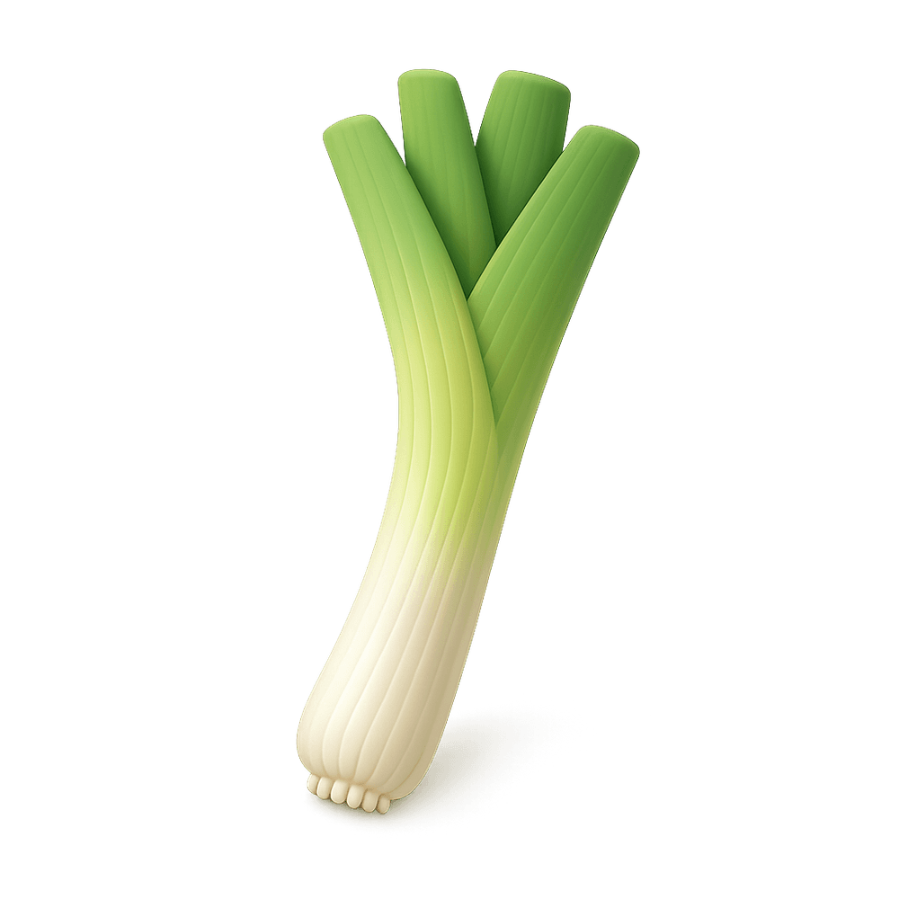 A leek is a long, green vegetable related to onions and garlic, known for its mild, sweet flavor. Commonly used in soups, stews, and a variety of savory dishes, leeks are valued for their versatility and nutritional benefits.