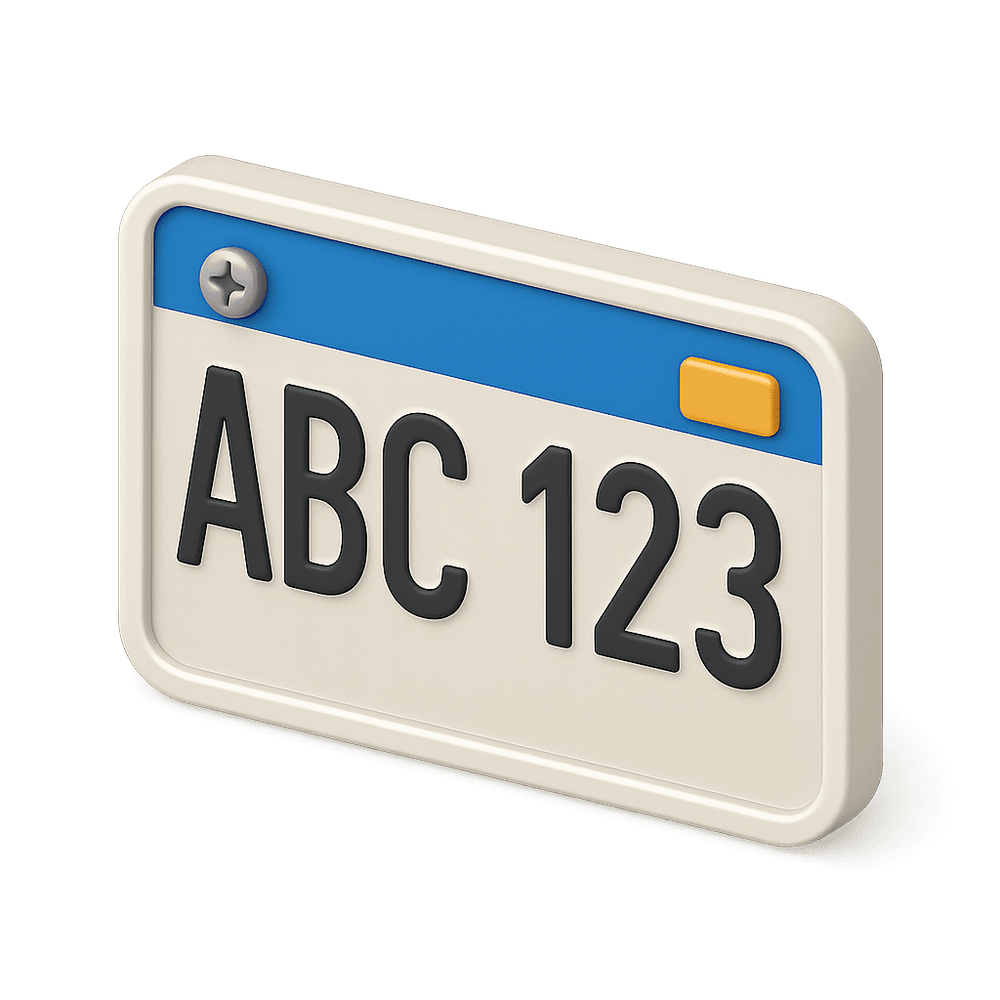 A license plate is a metal or plastic plate attached to a vehicle for official identification and registration purposes. It displays a unique combination of letters and numbers assigned by government authorities.