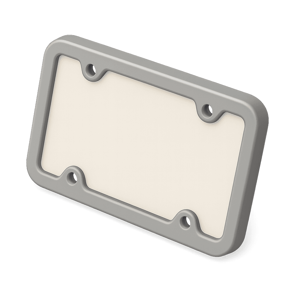 A license plate frame is a decorative or protective border that surrounds a vehicle's license plate. It can be used for personalization, advertising, or to protect the plate from damage.