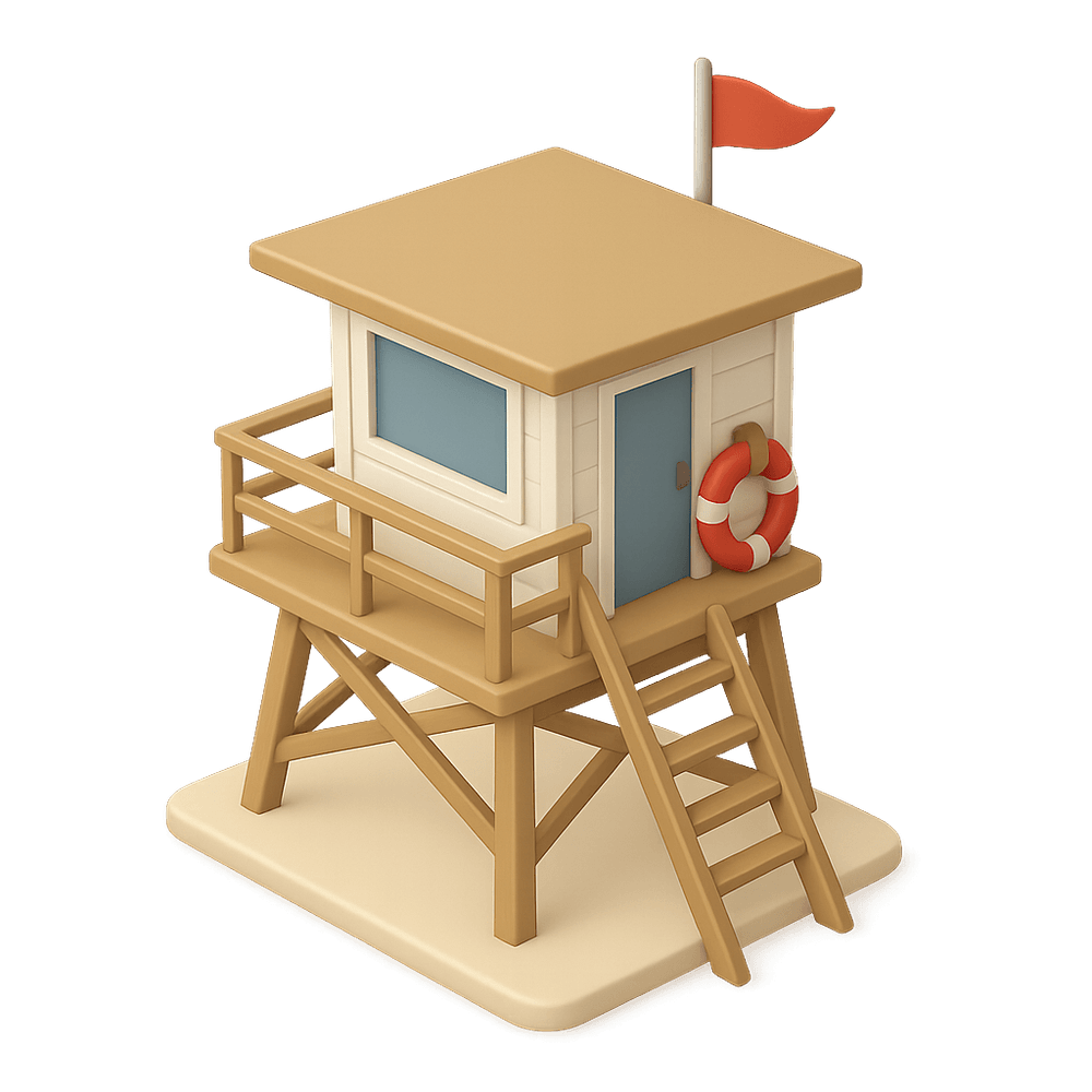 A lifeguard tower is an elevated structure located on beaches or poolsides, used by lifeguards to observe swimmers and ensure their safety. It provides a clear vantage point for monitoring water activities and responding quickly to emergencies.
