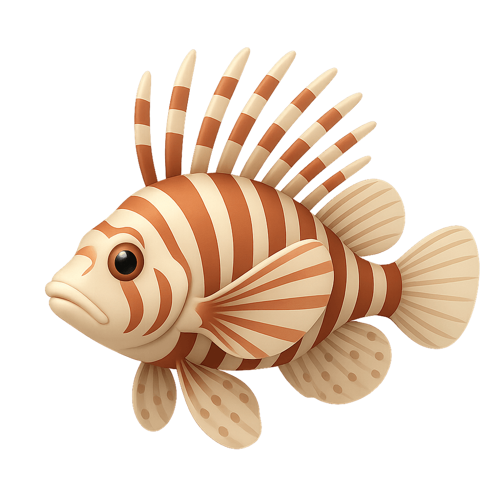 The lion fish is a strikingly beautiful but venomous marine fish known for its bold stripes, long spines, and flowing fins. Native to the Indo-Pacific, it is a predatory species that has become invasive in other regions, impacting local ecosystems.