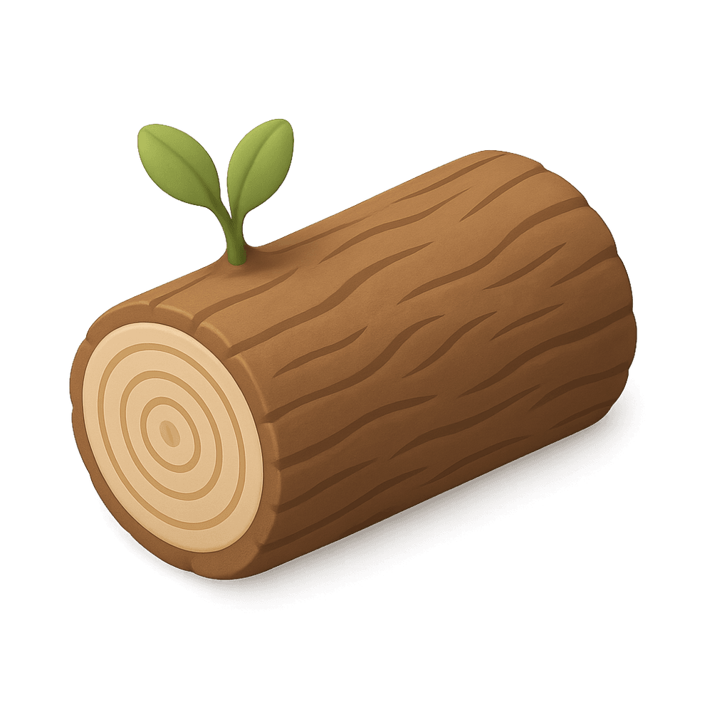 A log is a large, fallen or cut section of a tree trunk, commonly found in forests, parks, or natural outdoor settings. Logs serve as natural seating, play structures, or habitats for wildlife, and are often used in campfires or as building material in rustic outdoor projects.